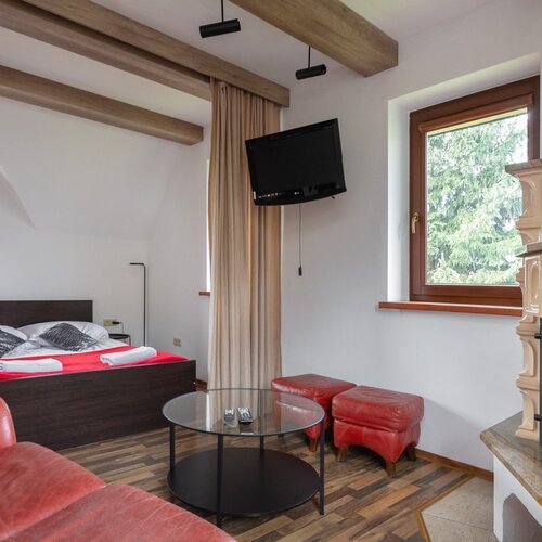 | Pobyt dla 2 osób minus 50 zł, każda kolejna osoba 30 zł; drewno do komnikna wiązka 15 zł; opłata miejscowa 2 zł / osoba za każdy pełny dzień kalendarzowy | ||||