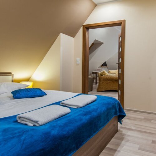4-osobowy apartament o powierzchni 50 m² składa się z dwóch sypialni: jednej z łożem małżeńskim, drugiej – z dwoma pojedynczymi łóżkami. Istnieje możliwość dokwaterowania 2 osób na rozkładanej sofie w pokoju dziennym. Atutem apartamentu jest nie tylko komfortowe wnętrze, ale i piękny widok, jaki rozpościera się z balkonów na Tatry – Giewont i masyw Czerwonych Wierchów.